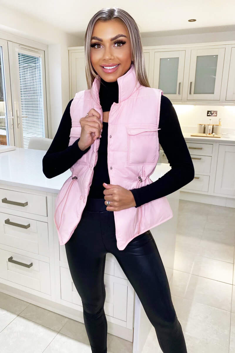 Add this Baby Pink Puffer Gilet to your wardrobe, perfect for a go-to
