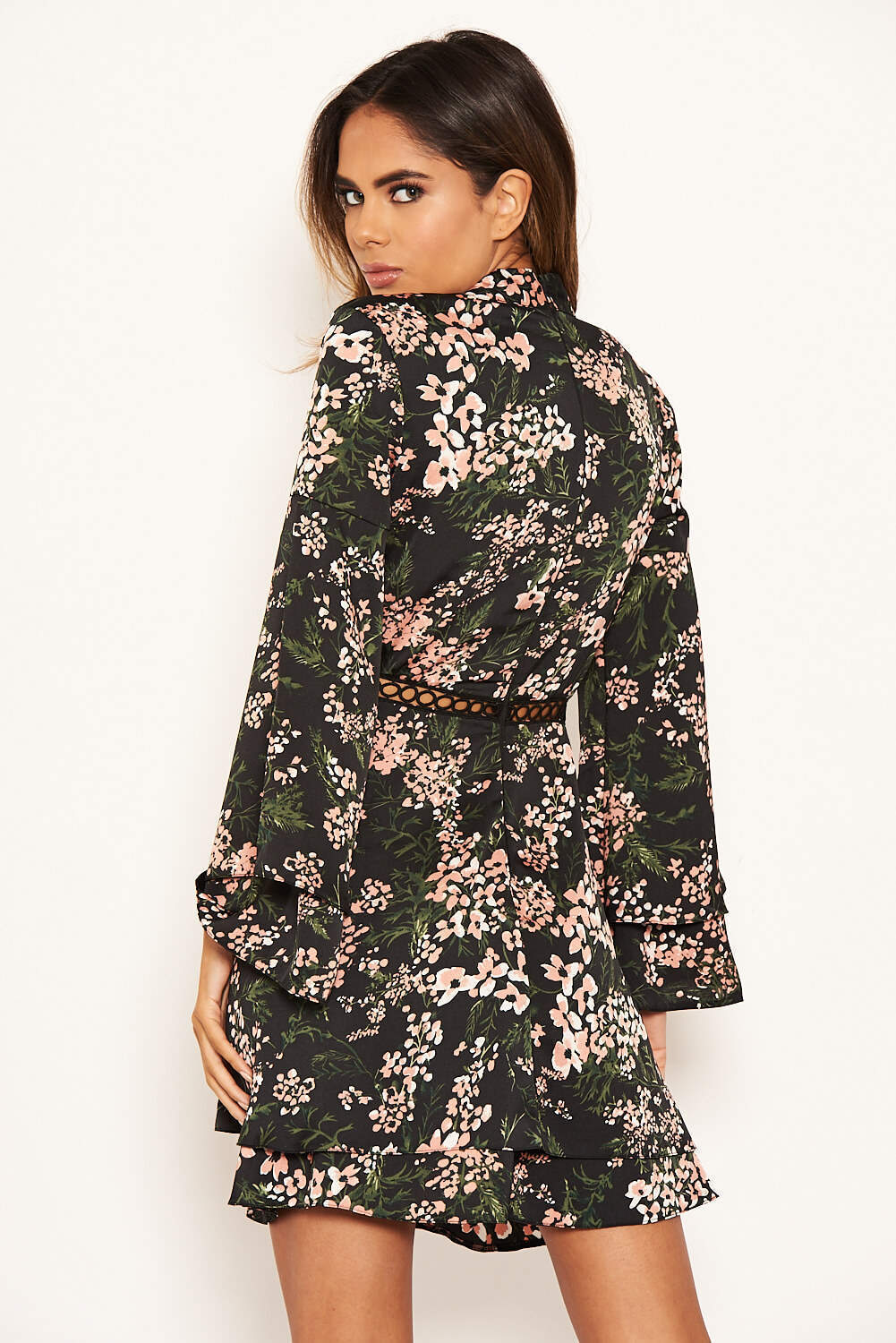 Black Floral Frill Skirt Dress