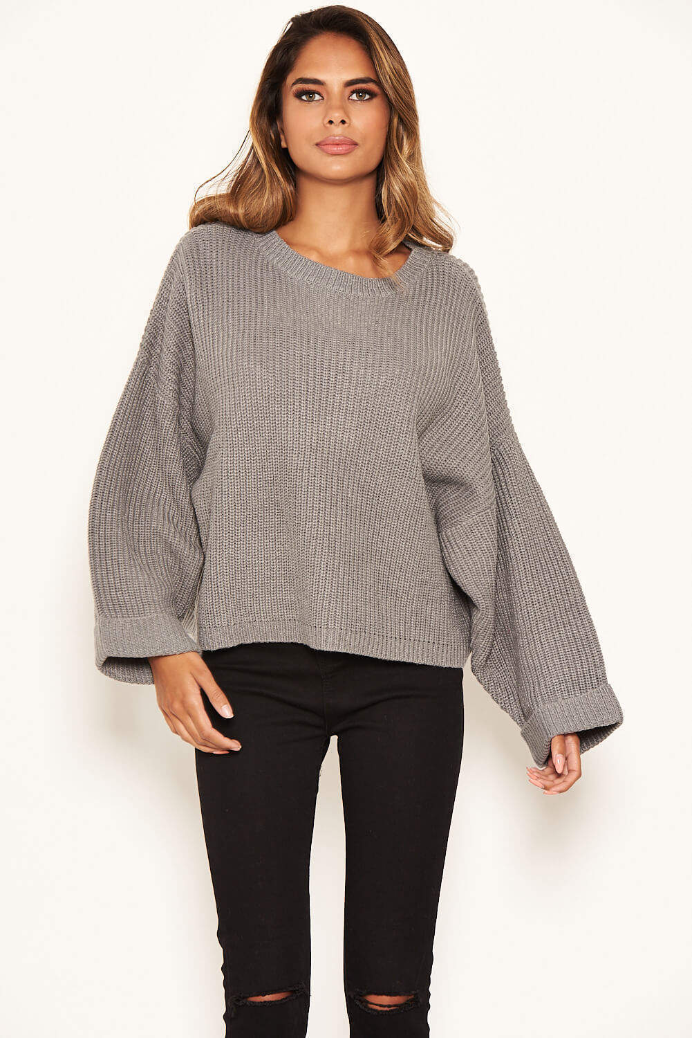 Our Silver Wide Sleeve Cropped Knit Jumper is essential for this